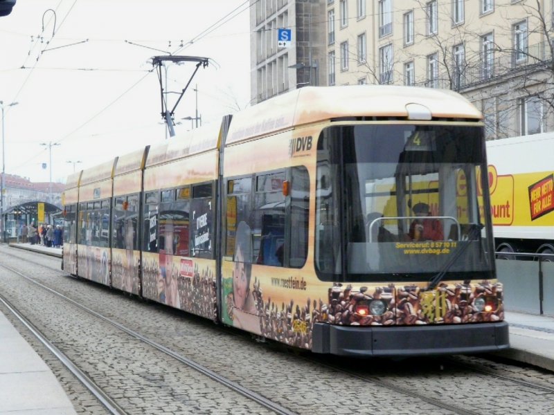 Dresden - Strassenbahn Nr.2830 unterwegs auf der Linie 4 am 10.12.2008