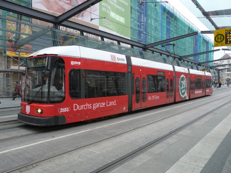 Dresden - Strassenbahn Nr.2583 unterwegs auf der Linie 11 am 10.12.2008