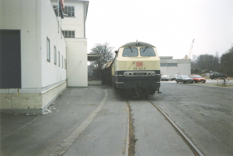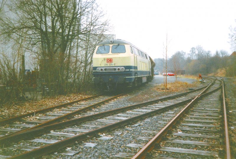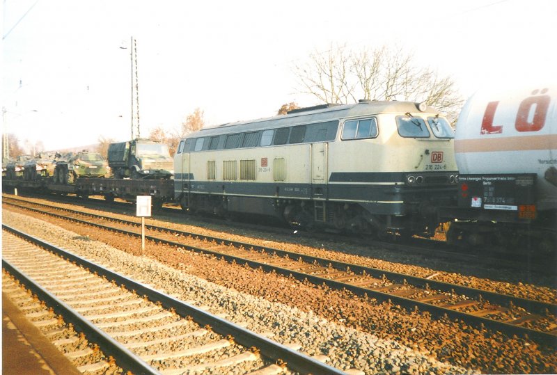216 224-6 ist im Bahnhof Eschwege West beim rangieren. März 1996. Foto-Scan.