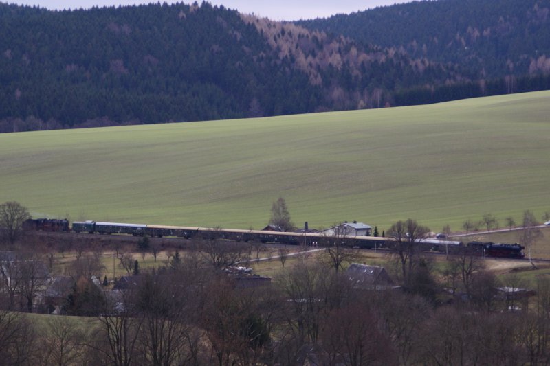50 3648 und 58 311 auf Talfahrt in Richtung Lößnitz unterer Bahnhof am 28.03.09.