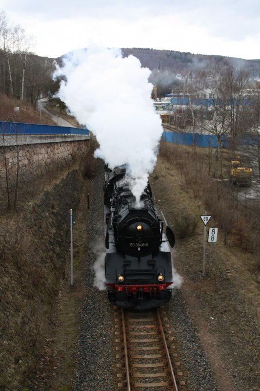 28.3.09 50 3648 des SEM auf ihrer Abschiedfsfahrt. Hier in Zwönitz.