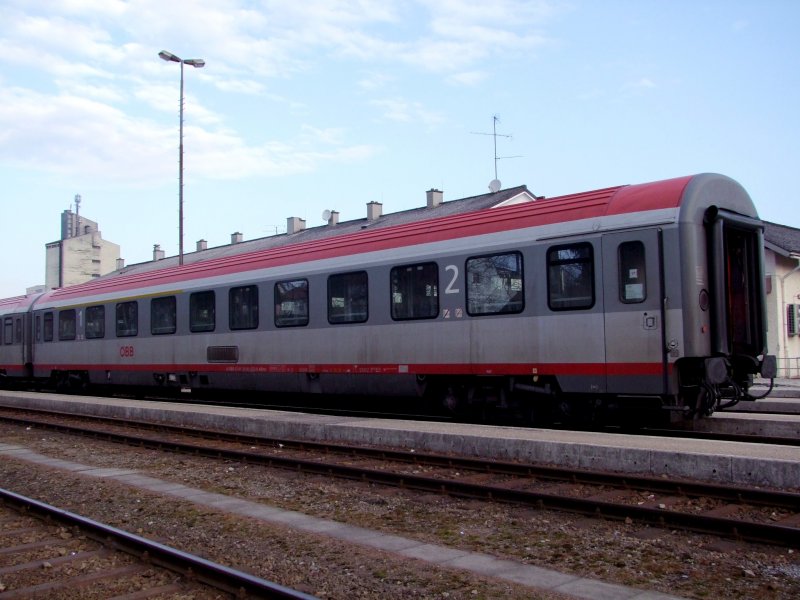 1016 023 Kyoto - Taurus bespannte heute den OEC566. Auf Grund einer Langsamfahrstelle zwischen Hörsching und Oftering fuhr der Zug nur ca. 100km, uns so konnte ich ihn auch bei regnerischem Wetter scharf genug ablichten. Im Vordergrund ist das Anschlussgleis zum Fliegerhorst Vogler zu sehen. Aufgenommen am 29.03.2009.