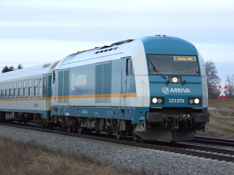 Lok 111 035 mit Dosto nach Salzburg in Prien am Chiemsee, 28.Feb.09