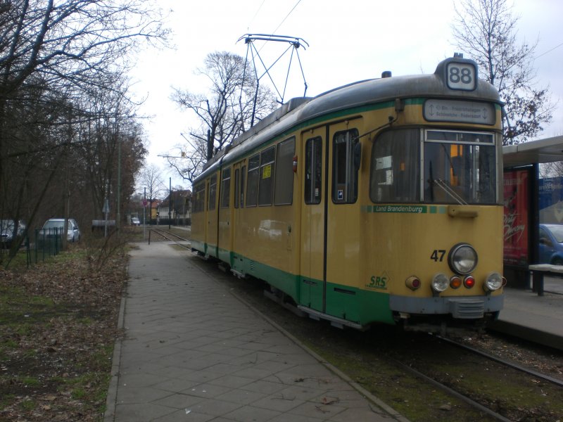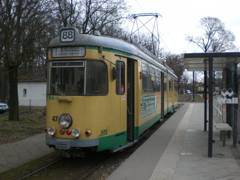 Berlin: Straßenbahnlinie 88 nach Alt-Rüdersdorf am S-Bahnhof Friedrichshagen.