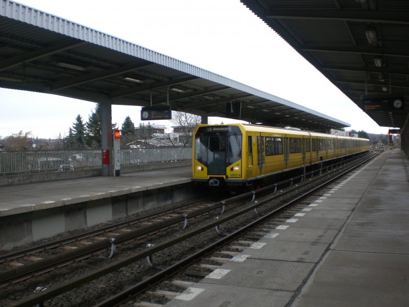 Berlin: Die U5 nach S+U Bahnhof Alexanderplatz im U-Bahnhof Neue Grottkauer Straße.