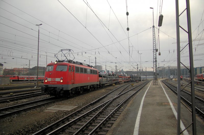 115 323 am 14.03.09 mit CNL 1289 `Pyxis´ von Hamburg-Altona nach München-Ost bei der Ausfahrt München Hbf