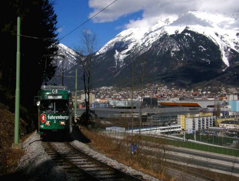 28.3.2009, Stubaitalbahn verlässt die Haltestelle Sonneberugerhof in Richtung Gärberbach