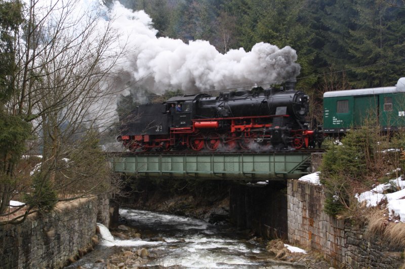 58 311 auf der Schwarzwasser Brücke kurz nach Antonsthal am 28.03.09.