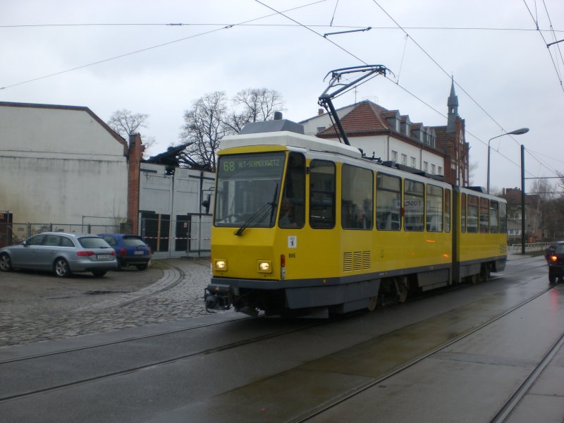 Berlin: Straßenbahnlinie 61 nach Rahnsdorf Waldschänke am S-Bahnhof Spindlersfeld.