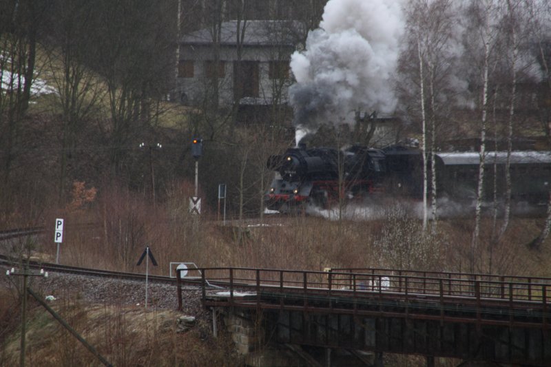 50 3648-8 und 58 311 schlägeln sich am 28.03.09 durch Raschau.
