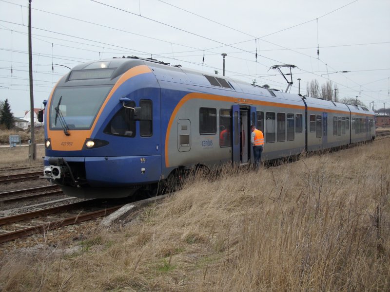 Cantus Flirt 427 552 am 31.März 2009 während einer Zigarettenpause in Bergen/Rügen.