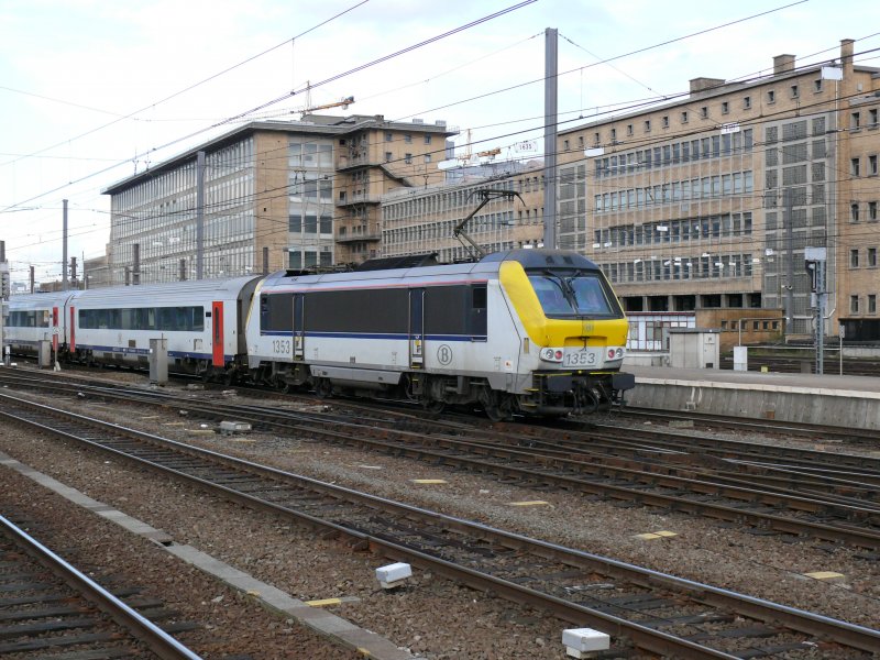 SNCB-Lok 1353 mit Personenzug in Brüssel-Süd. Aufgenommen am 27/03/2009.