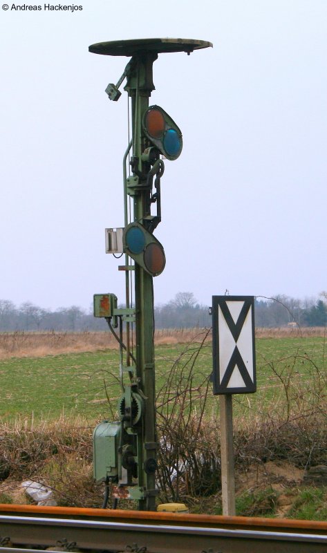 Zum Zeitpunkt der Aufnahme am 22.3.09 war das Formvorsignal der Bk Basheide durchgeschalten. Nun ist die strecke (Rastatt-Durmersheim-Karlsruhe)wegen den Bauarbeiten gesperrt, ab 28.7.09 wird dieses Signal dann wohl zum letzten Mal für 5 Monate in Betrieb genommen