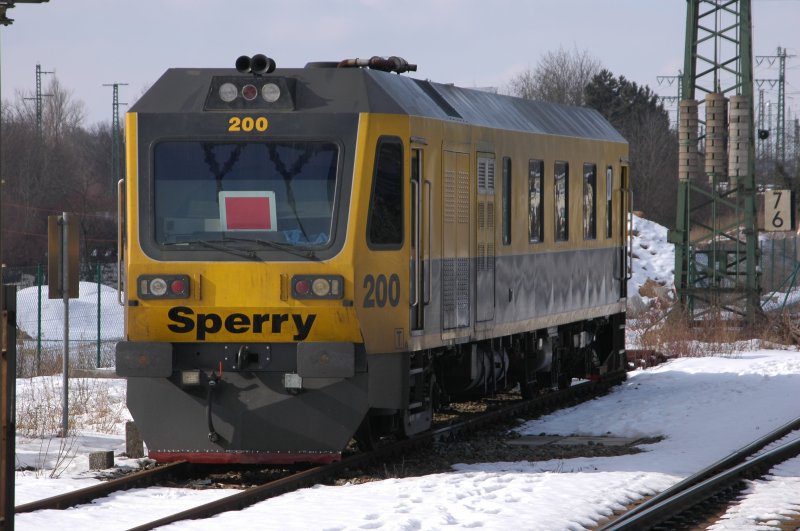 Ultraschallschienenprüffahrzeug 200 der Sperry Rail Service am 25.02.09 in München-Pasing