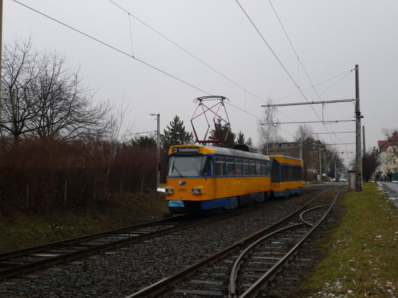 Die T4Dm 2190 mit Niederflurbeiwagen in Leipzig-Großzschocher. 20.02.2009