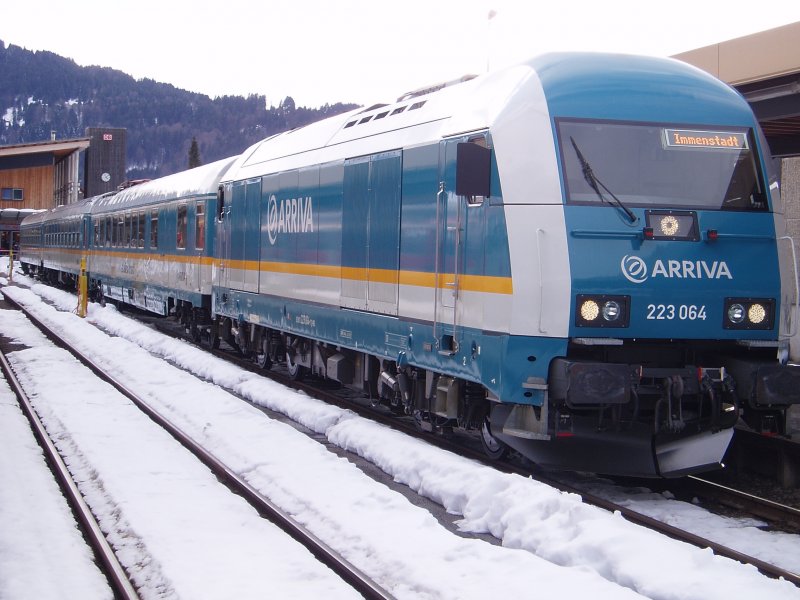 Am 08.03.2009 Nachmittag steht ein ALEX fertig zur Abfahrt nach München bereit.Auf der Lok steht allerdings nur das der Alex nach Immenstadt fährt.Dies ist Richtig aber gilt nur für Die Lok 223 064.Das ist etwas verwirrend.