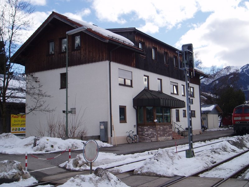 Hier sieht man das Stellwerk und Übernachtungsgebäude für Das IC´s Personal von Oberstdorf am 08.03.2009.