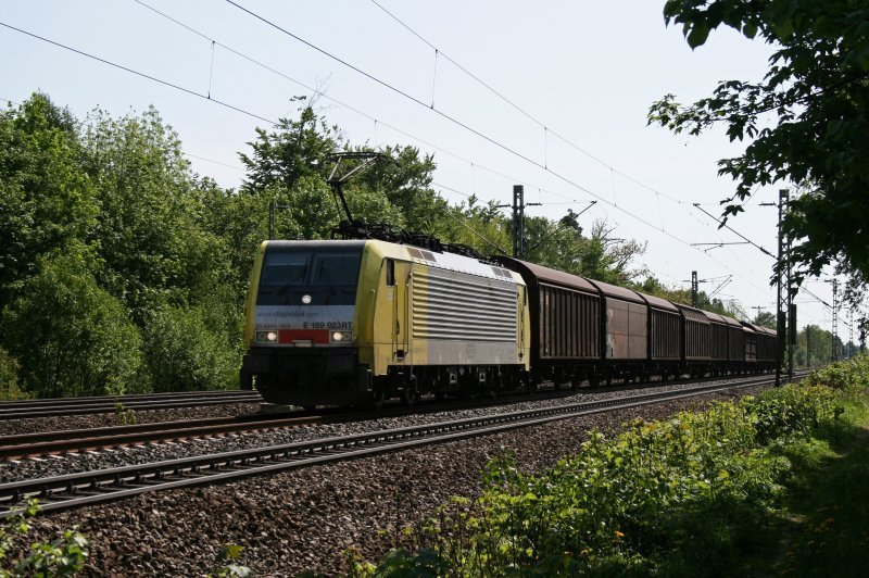 189 923 mit einem Güterzug am 09.05.2009 in Haar (bei München).