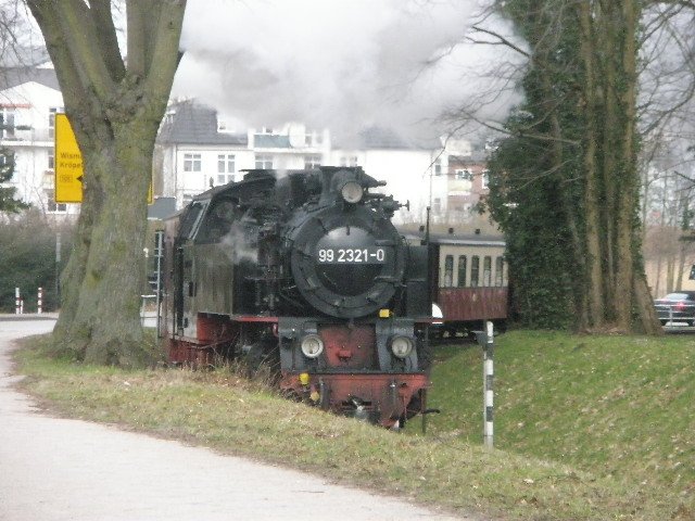 Am 15.3.2009 fuhr 99 2321-0 der Mecklenburgischen Bäderbahn in den Endbahnhof der wuderschönen Mollistreck Bad Doberan ein.