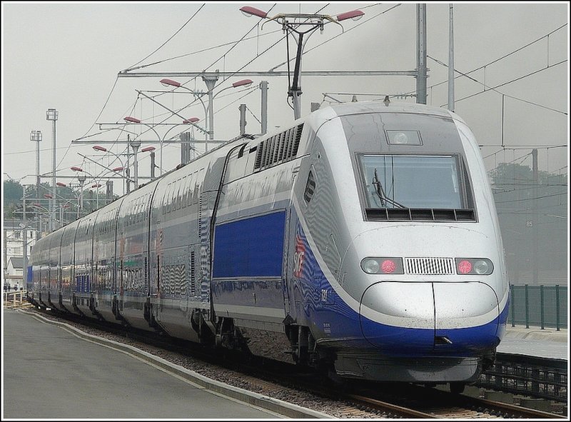 Bevor er überhaupt Fahrgäste transportierte, konnte der fabrikneue TGV Duplex am Fest 150 Jahre Eisenbahn in Luxemburg von außen und innen unter die Lupe genommen werden, während dahinter gerade eine AMTF Lok vorbei gedampft ist. 09.05.09 (Jeanny)