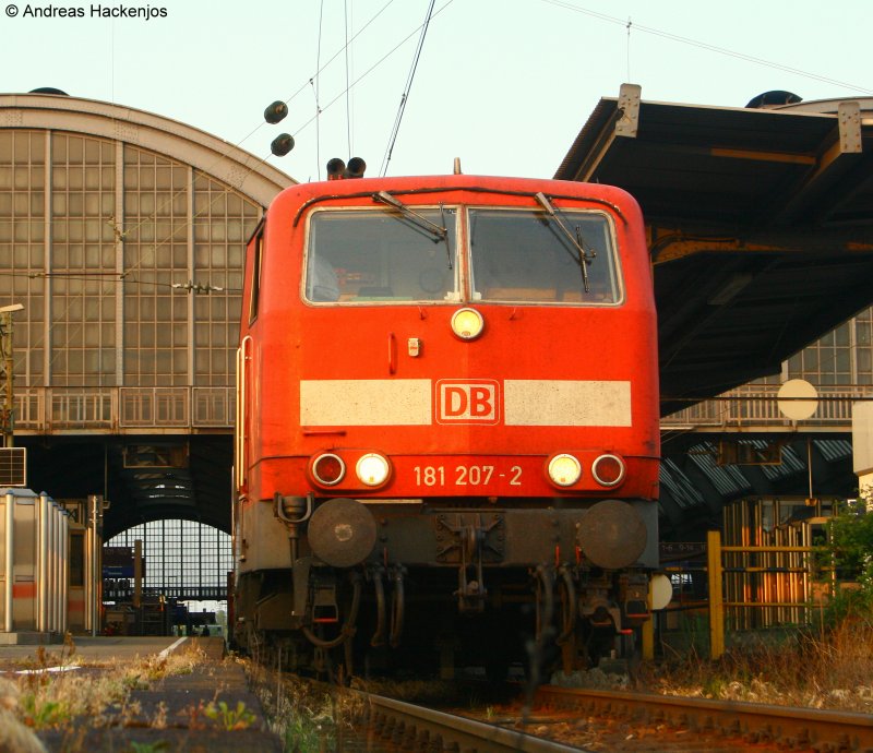 181 207-2 im Abendlicht mit dem EC 360(München Hbf-Straßbourg) in Karlsruhe Hbf 2.5.09