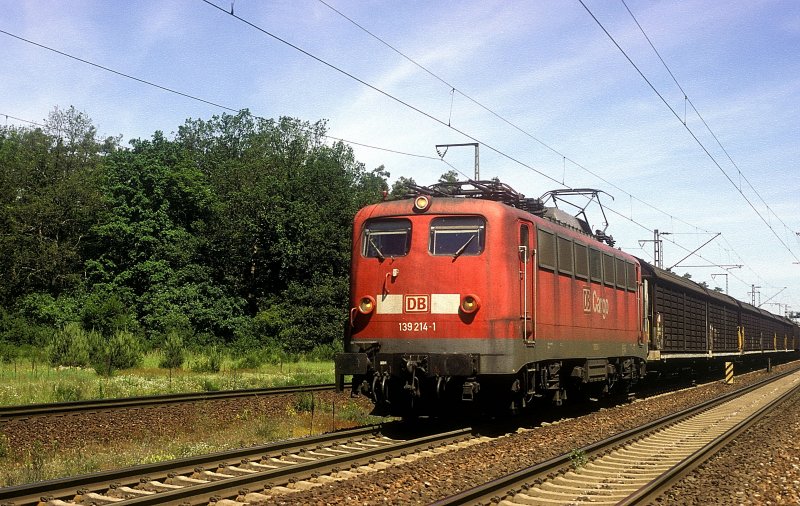 139 222-4 läuft am 25.05.2009 aus dem Bahnhof Bielefeld-Brackwede in Richtung Ruhrgebiet aus. Eine knappe Stunde vorher war Sie aus der selben Richtung im Alleingang gekommen, um den Bauzug mit leeren flachen Materialwagen zu holen. Pflegetechnisch könnte man an der Lok mal wieder etwas unternehmen; die Verschmutzungen unter den Lufteinlässen sind selten so intensiv wie hier.