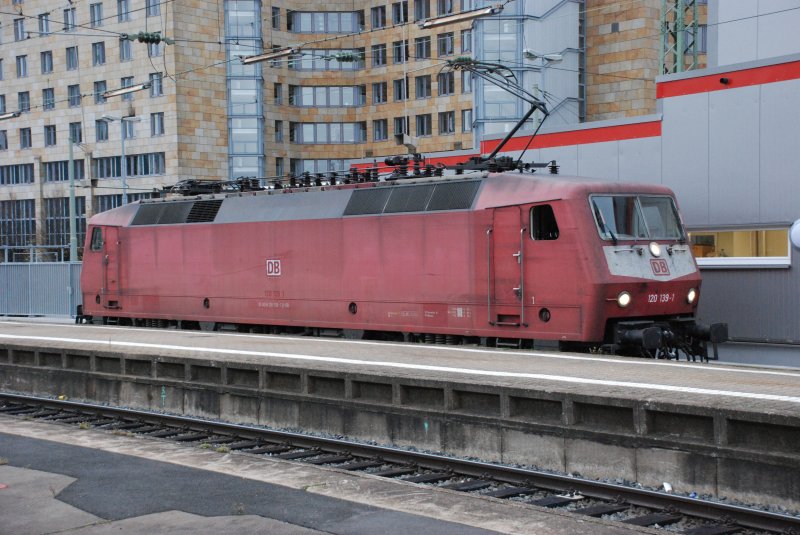 Die schöne 120 139-1 bei der langsamen Fahrt aus den Bahnsteiggleisen in Frankfurt/Main. Das Foto entstand am 23.11.2008