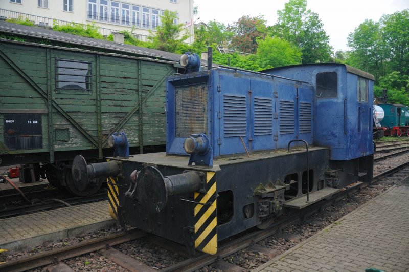 Eine kleine blaue Rangierlok hat auch ihr Zuhause in Neustadt/Weinstrasse gefunden. Es dürfte sich um eine von Henschel 1939 für BBC gebaute "Köf" handeln. (Mai 2009).