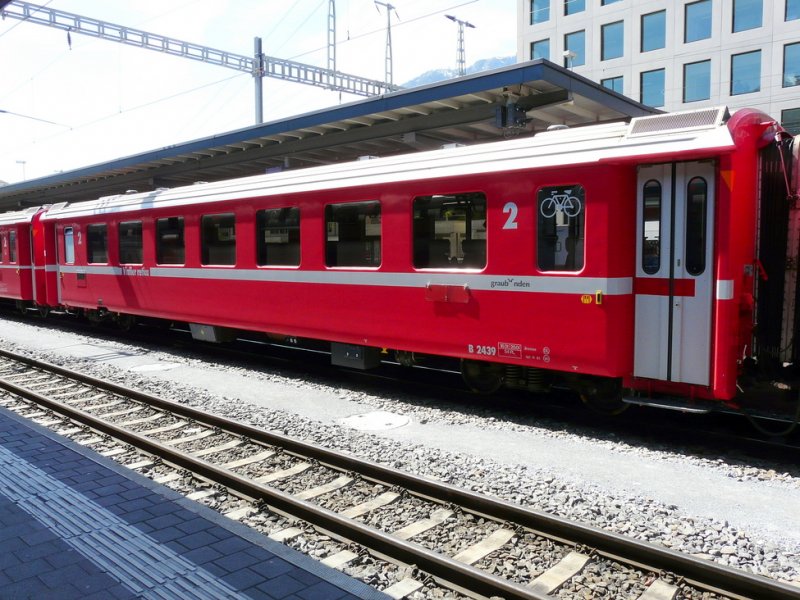 RhB - 2 Kl. Personenwagen B 2439 im Bahnhof von Chur am 07.05.2009