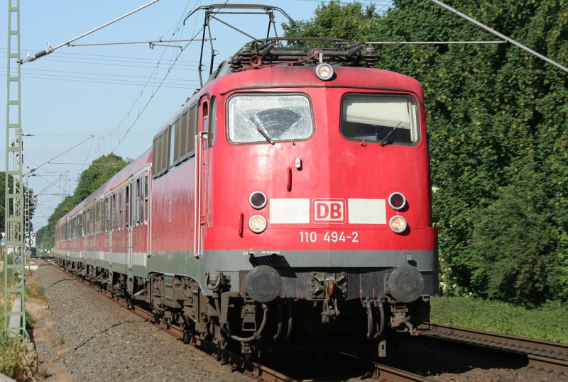 Die 110 494-2 auf dem RE4 Verstärker kurz vor Geilenkirchen am 29.05.2009