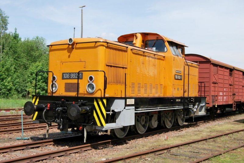 Die bestens gepflegte ehemalige Werklok des Trafo- und Röntgenwerkes Dresden hat in Schwarzenberg die Nummer 106 992 erhalten, 21.05.09