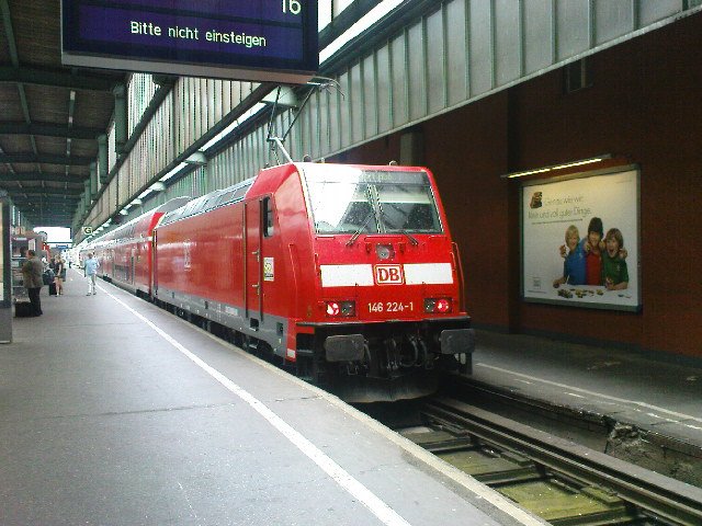 Eine BR 146 steht mit ihrem Dosto Wendezug abfahrbereit im Stuttgarter Hbf.