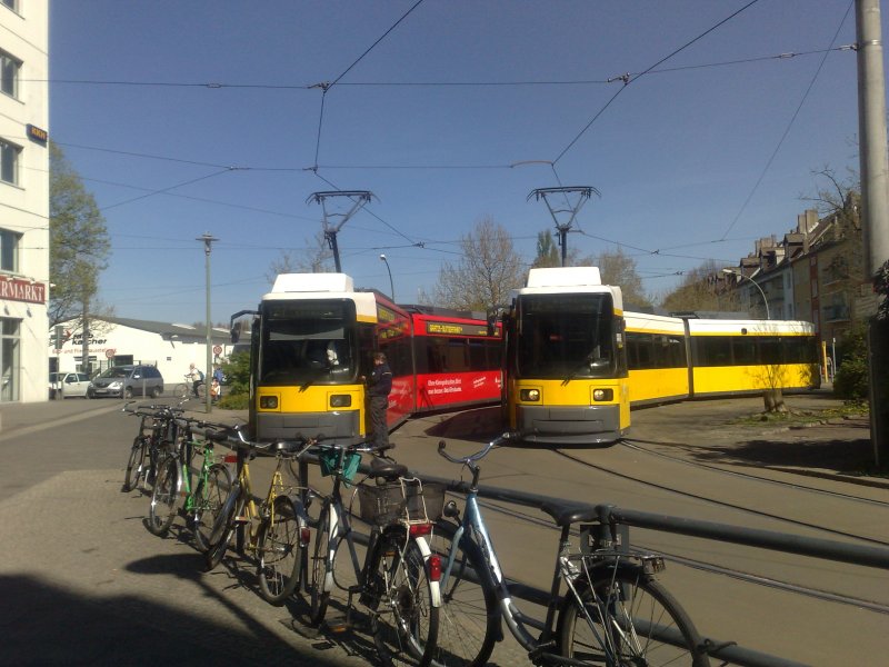 Düwag GT8 Nf 516 am Rangierbahnhof als Verstärkerzug im Maimarktverkehr am 03.02.09