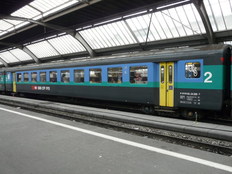 SBB - 2 Kl. Personenwagen B 50 85 20-34 526-7 im Hauptbahnhof Zürich unterwegs am 20.02.2009