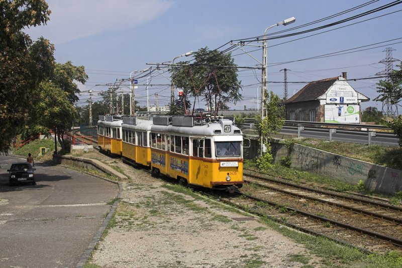 Wegen einer Streckensperrung wurde bereits an einer provisorischen Haltestelle Lánchíd gewendet. Hier fährt gleich der Tw 1364 ab.