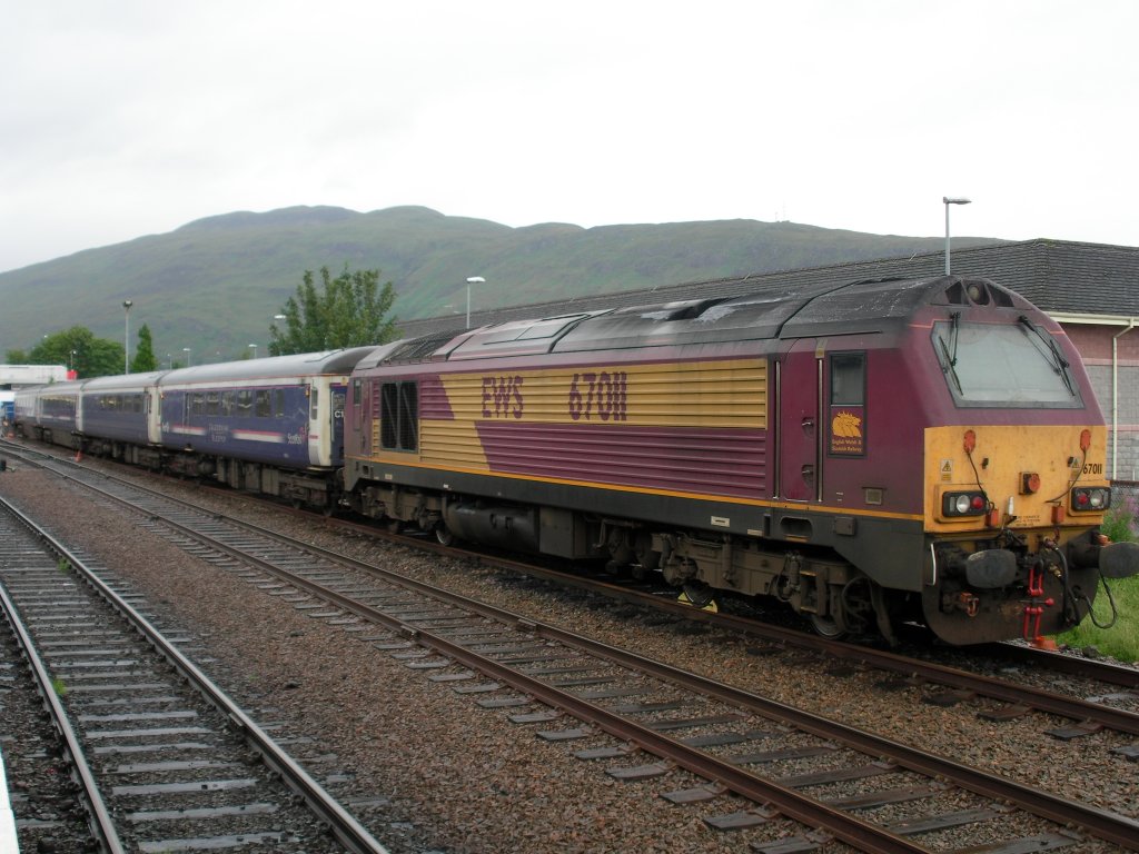 Caledonian Sleeper (Nachtzugverbindung der FirstScotRail zwischen Schottland und London Euston) bei der Ruhepause in Fort William.