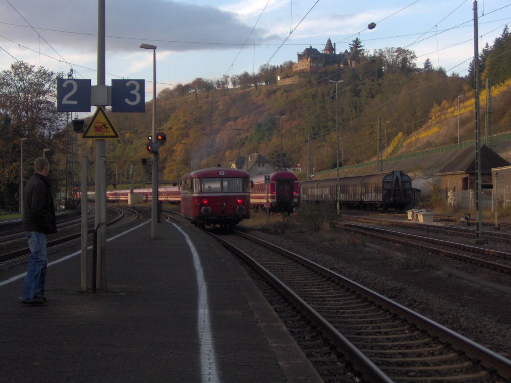 Ein VT98 der kurz vor der Abfahrt zum Bahnhof Kalenborn ist.