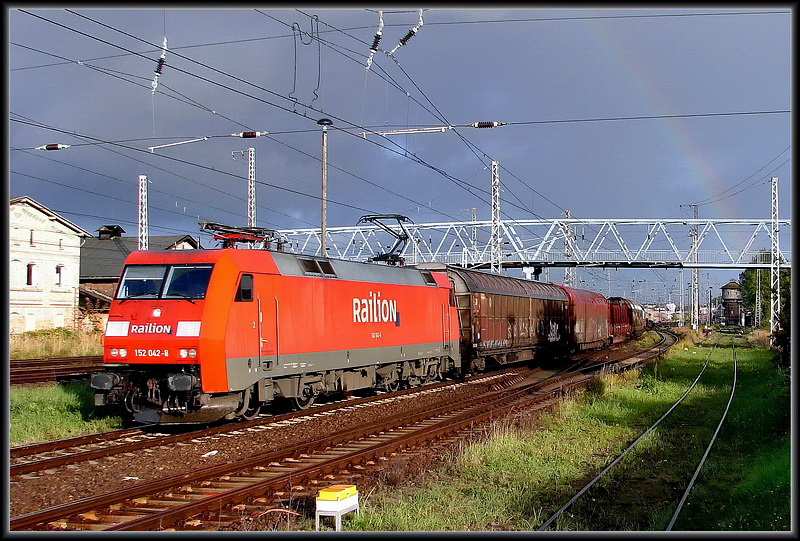 (mit Miniregenbogen) 152 042-8 führt -45504- nach Mukran. am 29.09.08