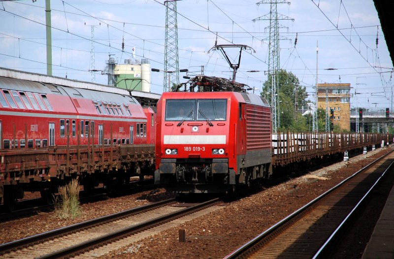 189 019 fährt am 29.07.09 in Schönefeld ein. Der Zug wurde dort samt Lok abgestellt.