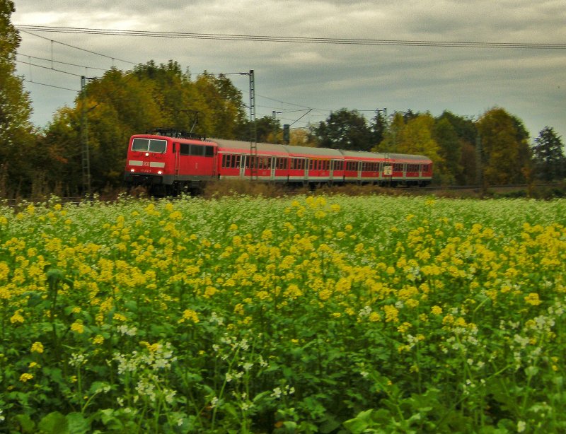 Am 11.10.2009 bin ich mal wieder zu einem etwas älteren Fotoplatz in Mangolding gegangen. Hat sich viel verrändert. Der Raps ist wirklich bunt geworden. Macht sich gut im Bild. Was sich nicht so gut war war das Wetter aber es gerade so hergehalten. Im Bild eine RB Zuglok war eine 111.