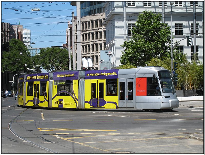 Der Rheinbahn-Tw 3309 fährt am 13.06.2009 von der Kasernenstraße kommend in die Haltestelle am Graf-Adolf-Platz.