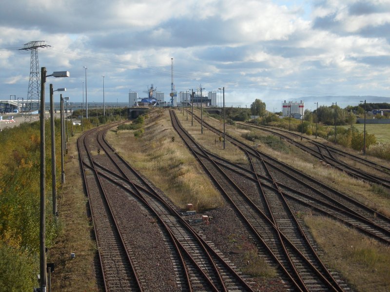 Der Breitspurteil von Mukran im Oktober 2009.Aufgenommen von der Straßenbrücke.