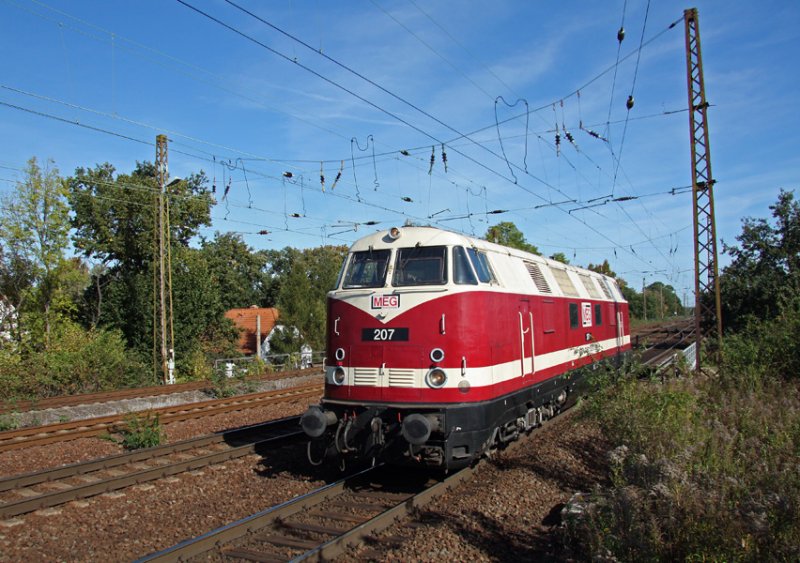 Lok 207(ehem.228 791) der MEG erreicht am 09.10.2009 den Bahnhof Leipzig-Wiederitzsch, um von dort aus gemeinsam mit anderen historischen Fahrzeugen zum Eisenbahnfest nach Weimar aufzubrechen.