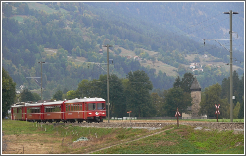 RE1152 mit Ge 4/4 III 642 (Breil/Brigels) zwischen Thusis und Cazis. (08.10.2009)
