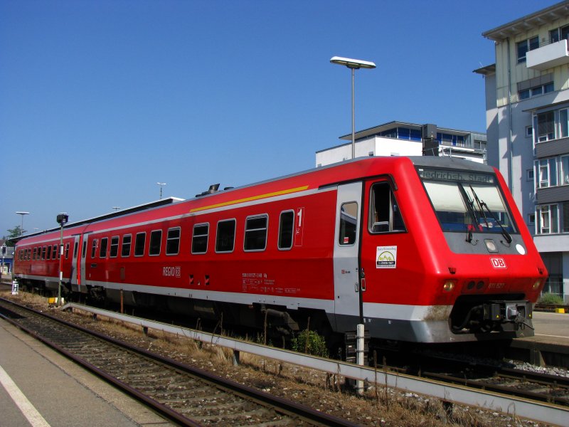 Am 6.August 2009 hatte IRE 3102 (Ulm Hbf-Basel Bad Bf) bei seiner Ankunft in Freidrichshafen über 60 Minuten Verspätung. Während die beiden vorderen Einheiten noch bis Singen weiterfuhren, um dort dann vorzeitig zu wenden, blieb die hinterste Einheit 611 027 in Freidrichshafen um den kurze Zeit später verkehrenden IRE 4206 (Lindau Hbf-Ulm Hbf) zu verstärken.