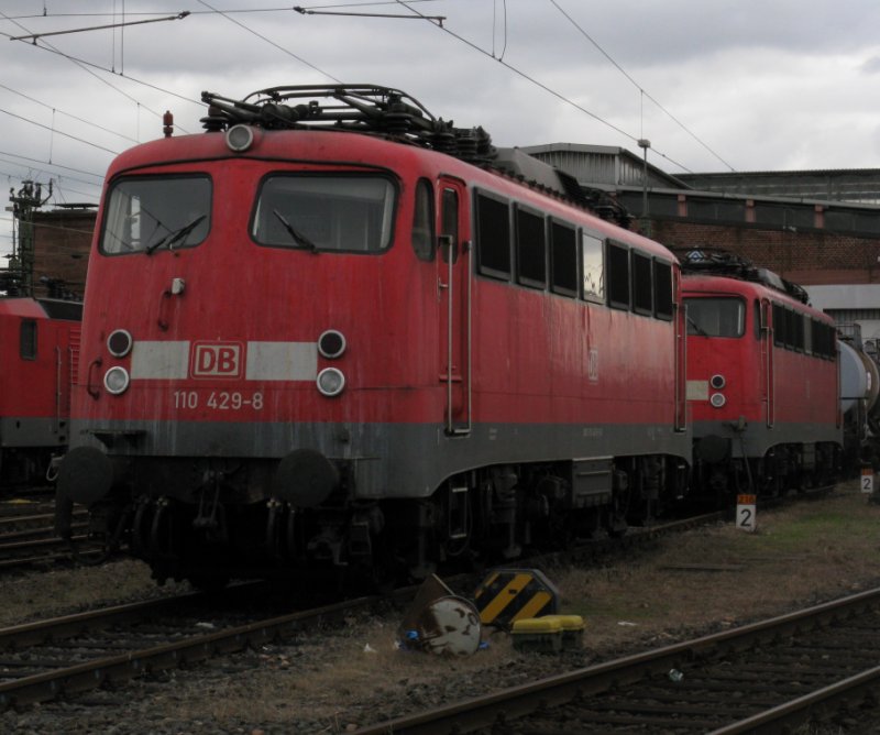 110 429 steht mit ihrer Schwesterlok am 17.10.09 in Frankfurt(Main).(Bild wurde von einer öffentliche Straße aufgenommen)