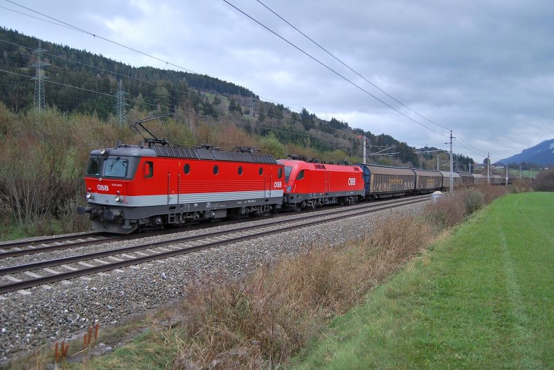 31.7.09 Grundsätzlich werden die Güterzüge zwischen Kledering und Moosbierbaum von 16er oder 44er bespannt, beides zusammen ist doch relativ selten. Am Bild ist die 1016 007 zusammen mit der 1144 278 am DG 55003 von Moosbierbaum Heiligeneich nach Kledering zu sehen.