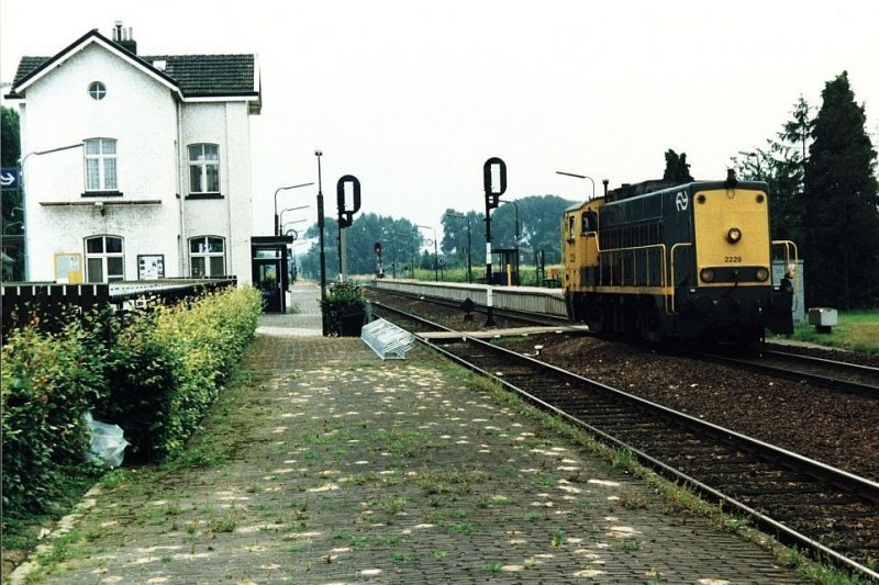 2229 mit Lokzug zwischen Roermond und Venlo auf Bahnhof Swalmen am 26-07-1991. Bild und scan: Date Jan de Vries.