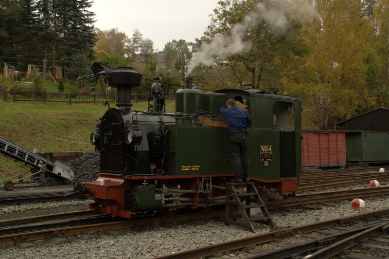 Die IK No 54 hat am 10.10.09 den Hp Loreleifelsen verlassen und dampft gen Jöhstadt. Schade daß das Spitzensignal noch nicht an war.