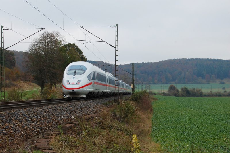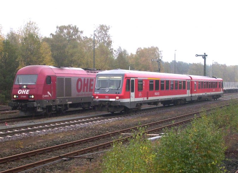 El Triebzug aus Perl kommend bei der Ausfahrt Bhf Oberbillig in Richtung Trier fahrend am 18.10.2009 17:32h